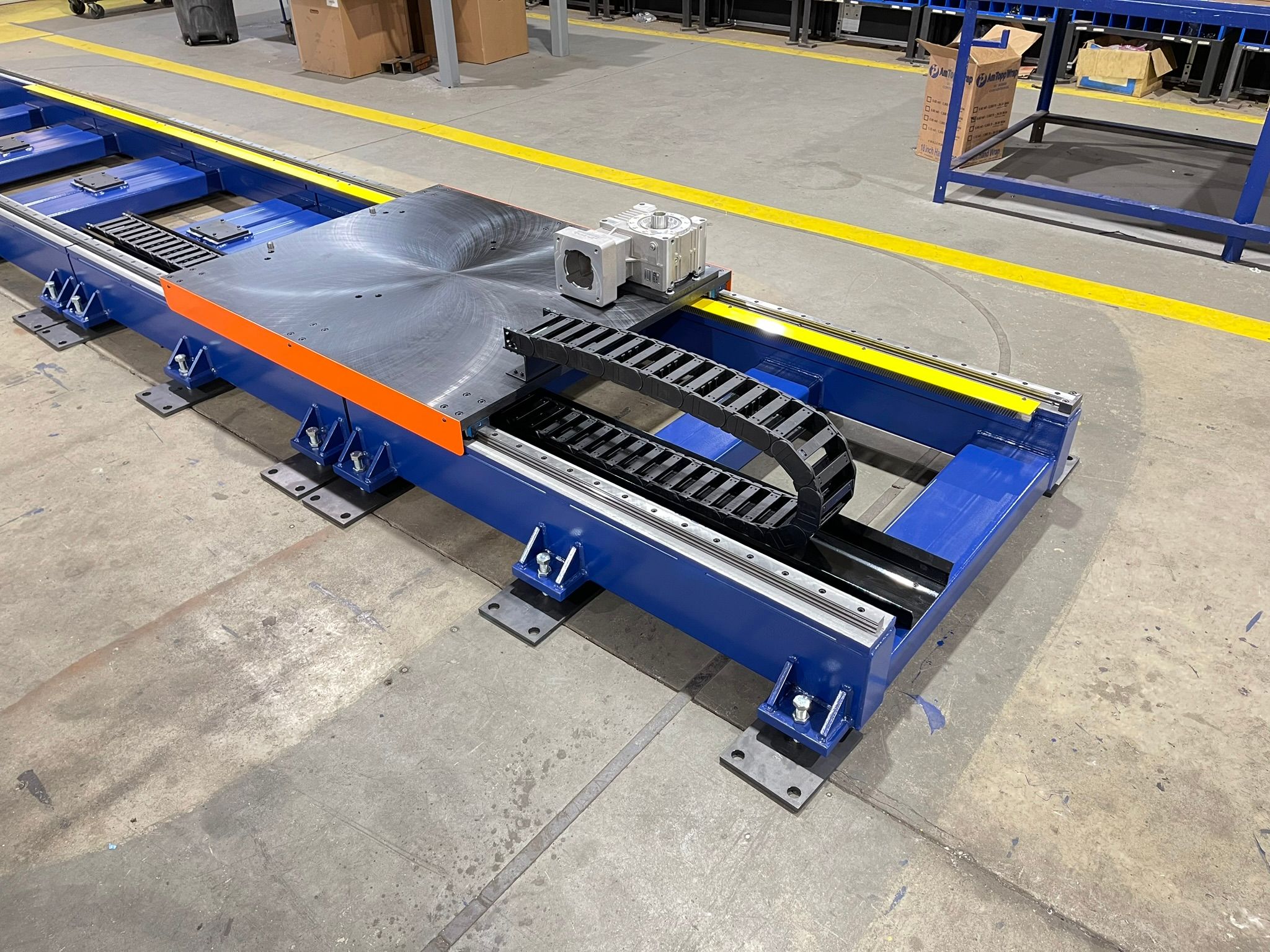 Heavy-duty steel or aluminum track engineered to support the full weight of the robot while maintaining high precision. -